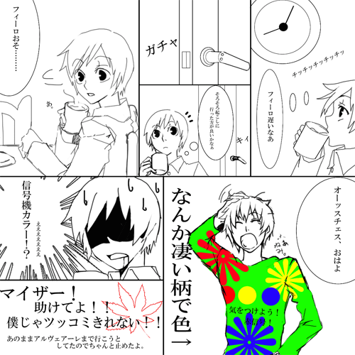 携帯を買い換えようか思案中。auのinfbar2がえらくかわいらしいのでもう決定済みみたいなものです。超可愛いよ!あれ。でも予約しなきゃ買えそうも無いのが難点………てゆっかいい加減ペンタブを新しくしてえ。なんかもうヤバゲです。お絵かきしてる途中にブチッと接続切れたりしてえらいストレス溜まります。